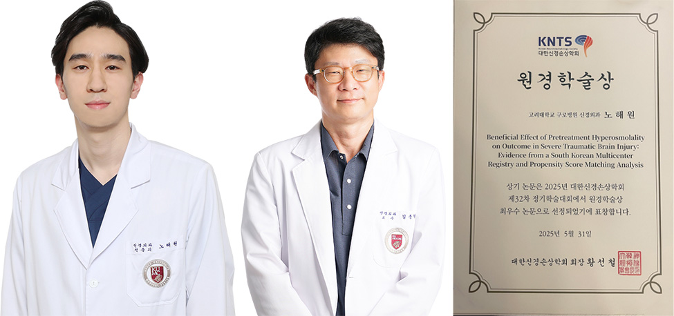 고려대학교 구로병원(병원장 민병욱) 신경외과 노해원 교수가 2025년 대한신경손상학회 정기학술대회에서 원경학술상 최우수 논문상을 수상했다.